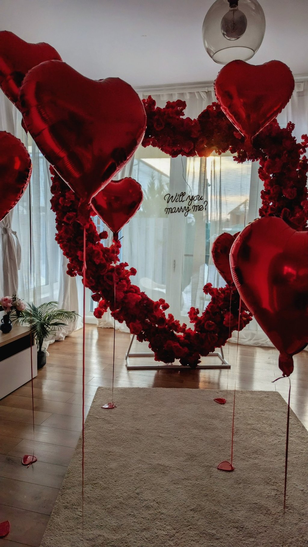 Decorațiunile fac diferența! Folosește lumânări, ghirlande luminoase, baloane cu heliu, petale de trandafiri sau chiar un aranjament floral special. Poți opta și pentru litere luminoase cu mesajul „Marry Me”.