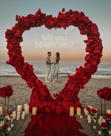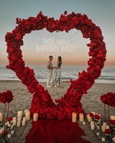 Arcadă în formă de inimă din trandafiri roșii artificiali
